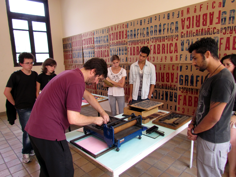 Durante o período da exposição, foram realizadas oito sessões de experimentação tipográfica, que ocorriam aos sábados ou mediante agendamento especial para grupos. Nessas sessões, com o auxílio de um tira-provas, alguns tipos de madeira, metal e até plástico, o público podia experimentar o princípio da composição e impressão tipográfica, imprimindo seus próprios textos. Parte destes textos se incorporava à exposição, sendo colados num dos painéis.