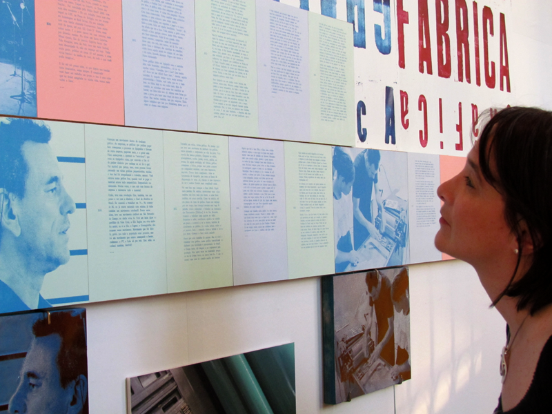 A própria publicação se tornou o eixo expositivo principal: as páginas impressas foram dispostas lado a lado em longos painéis horizontais e, acopladas a esses painéis foram colocadas todas as matrizes (clichês) correspondentes à impressão das imagens, de forma que o público pudesse analisar bem a relação entre matriz e estampa. Foram ainda dispostas algumas fotos mostrando ambiente das tipografias.