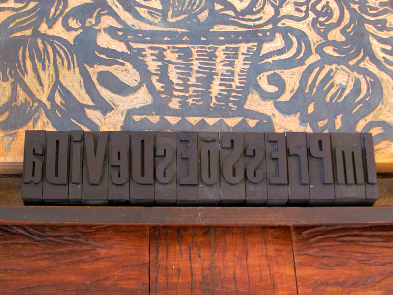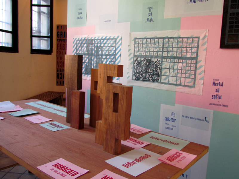 Paralelamente à publicação, foram apresentadas algumas xilogravuras e objetos, cuja temática se liga a esse universo tipográfico.