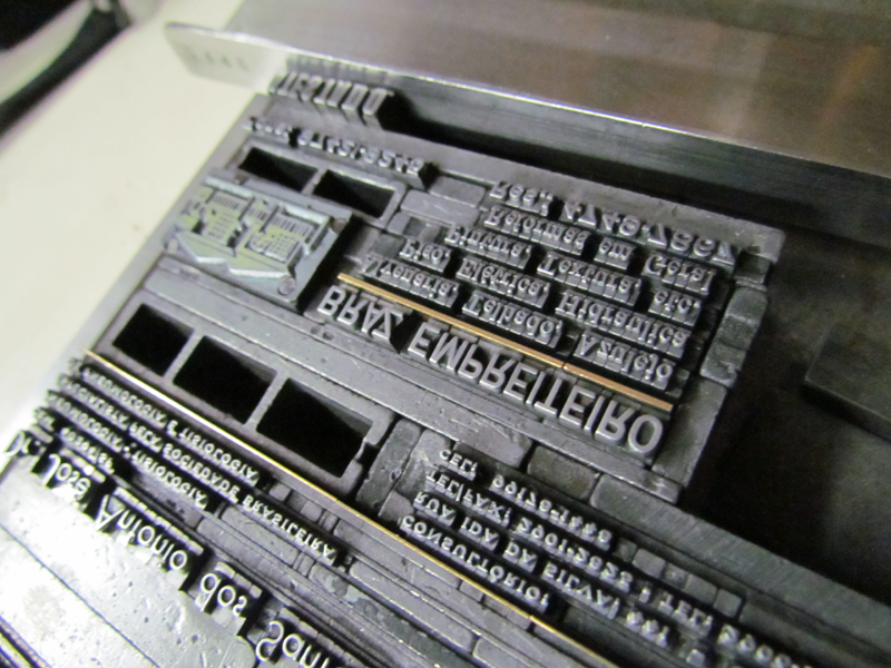 Andando pela Zona Norte, perto do metrô Parada Inglesa, deparei-me com a porta de uma garagem aberta de onde vinha o som familiar de uma minerva em ação. Assim conheci a pequena oficina do Sr. Aryovaldo, que não estranhou meu interesse pelo seu trabalho e foi logo estendendo um cartão de visita: “faço receituário, coisa pouca, pequena… Não trabalho todo dia aqui, se quiser me achar, liga num desses números aqui…”
