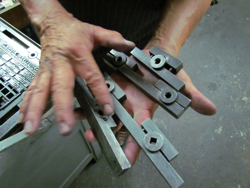 Antes tinha muita tipografia, linotipo também, nossa! Litografia conheço de nome e de ver algum impresso, nunca trabalhei. Com linotipo também não. Só com tipografia. Mas tem um cidadão, o Waldir, lá no Cambuci, na Rua dos Alpes, que ainda trabalha com linotipo. Às vezes vou lá pra fazer alguma montagem. Ele me dá o texto já em linhas e aqui eu arrumo, vou compondo, abrindo espaços entre as linhas, faço a blocagem, deixo do meu jeito, do jeito que precisa ser. Às vezes passa aqui uma garotada − porque aqui é tudo aberto, trabalho na rua −, e os meninos não acreditam que ainda imprimo assim, dizem que tô desatualizado. É um trabalho bonito, mas muita gente não dá valor.