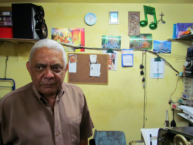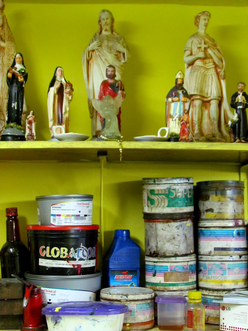 Tenho dois filhos e três netos. Meu filho até que me ajudou um pouco, mas não se interessou muito por essa profissão. Cada um segue seu caminho. E isso hoje é o meu trabalho, aqui é o meu canto. Eu amo o que faço. Sai bem feito porque faço com amor. Preciso ajeitar umas coisas, essa umidade na parede, mas agora, pra pintar, só no final do ano. Me apareceu muito serviço. Hoje vou até umas dez da noite.”