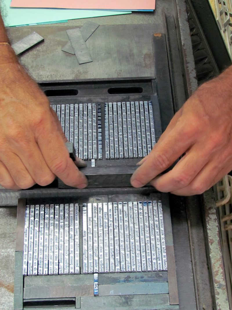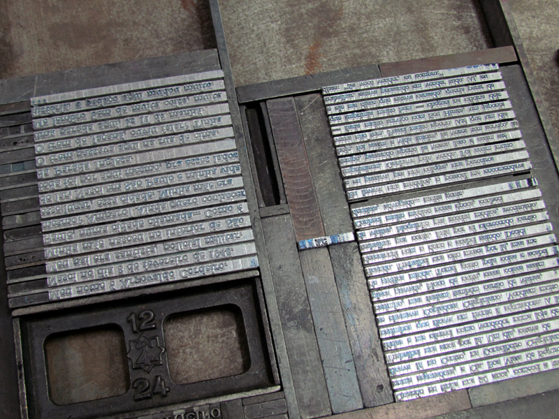 Hoje eu resumo: um bom tipógrafo tem que fazer uma boa justificação da chapa; a chapa tem que ser bem feita, com carinho. Não pode ter má vontade de trabalho, essa é a realidade. Tem que pegar forte, fazer mesmo o trabalho bem feito, bem justificadinho, porque, quando vai pra máquina, se você não tiver a chapa bem justificada, a tinta chupa o material, encavala no rolo, quebra a máquina, entendeu?